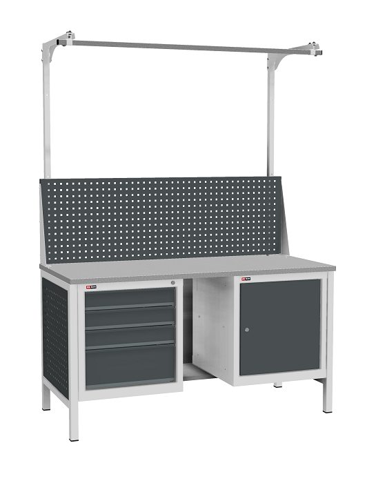 Дополнительно на верстак ВЛ-К можно установить: тумбы ВЛ-К-010, ВЛ-К-015, подвесные тумбы ВЛ-К-003, перфорированный экран, аксессуары на перфорированный экран, комплект освещения.